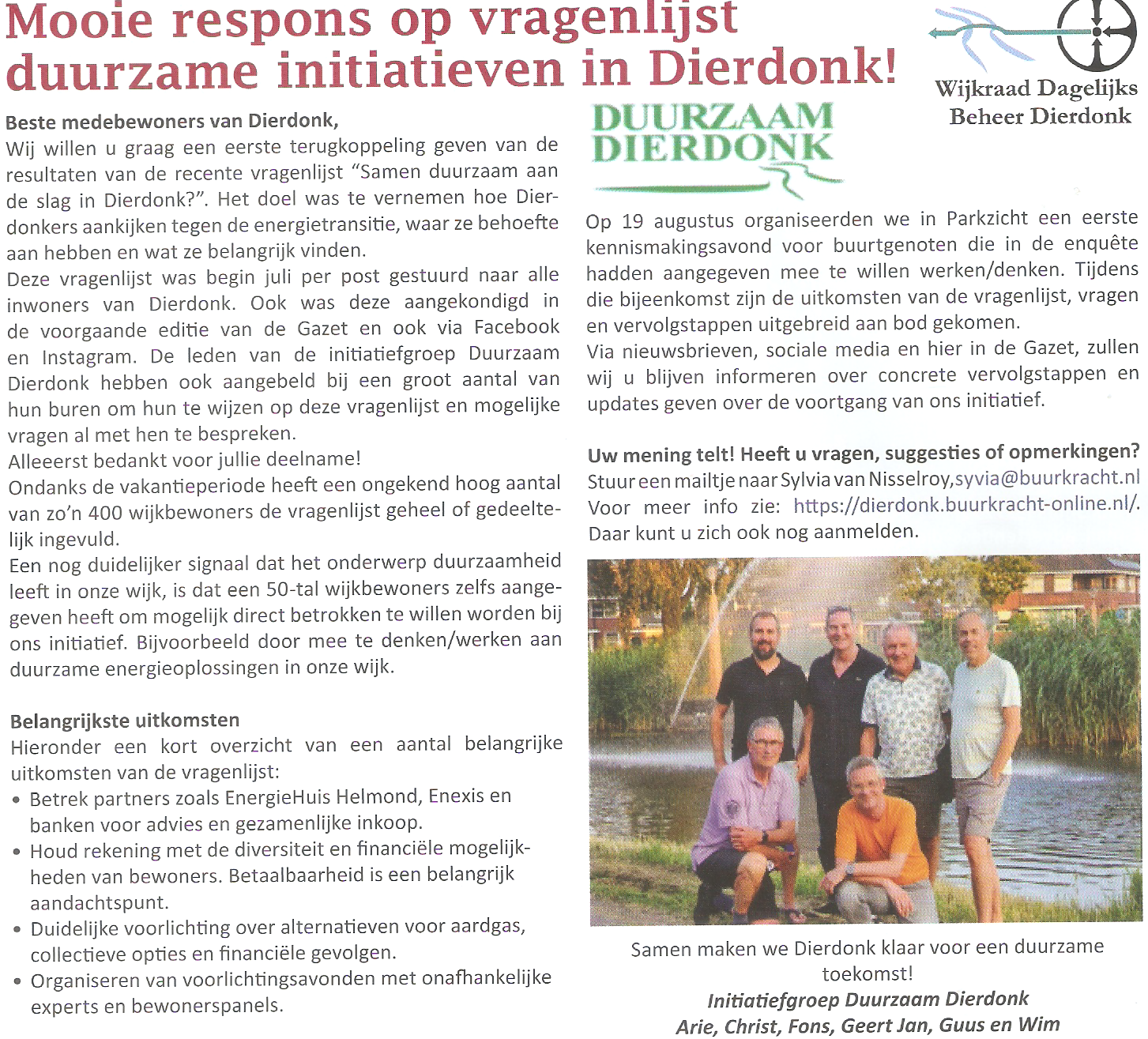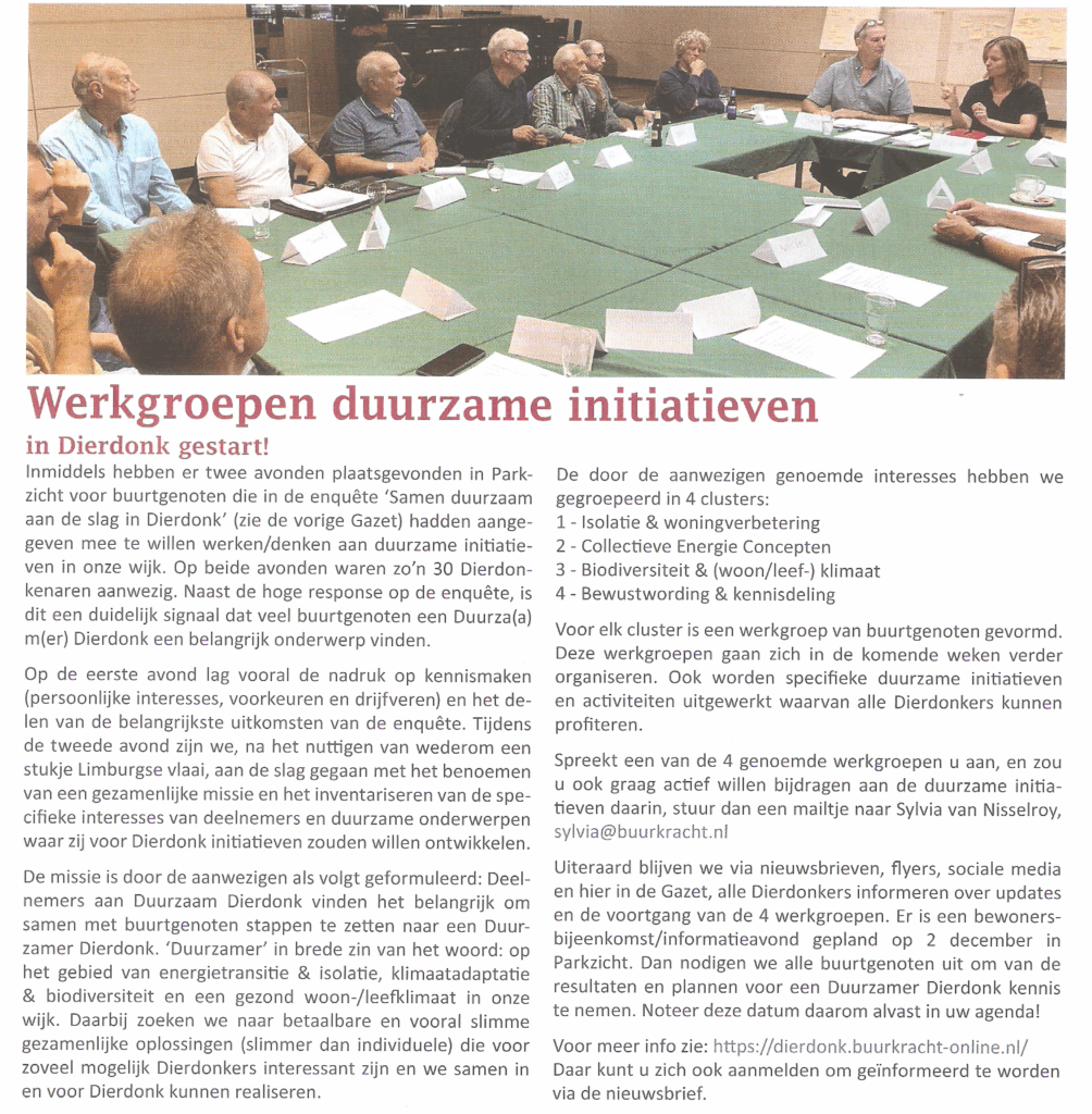 Resultaten vragenlijst “Samen duurzaam aan de slag in Dierdonk?”